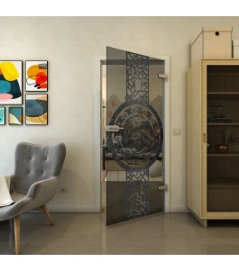 Ganzglastür - Fineprint Modell 151 Schwarz auf Grauglas