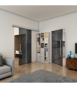 Pendeltür - Fineprint Modell 076 Schwarz auf Grauglas