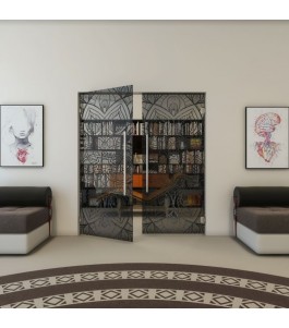 Pendeltür - Fineprint Modell 087 Schwarz auf Grauglas