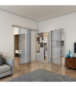 Pendeltür - Fineprint Modell 022 Weiss auf Grauglas