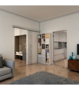 Pendeltür - Fineprint Modell 090 Schwarz auf Klarglas