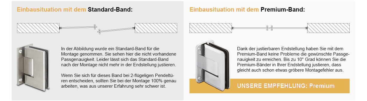 Mit der folgenden Abbildung möchten wir Ihnen erklären, warum Sie spätestens bei 2-Flügelligen Anlagen die Premium Bänder nehmen sollten.
